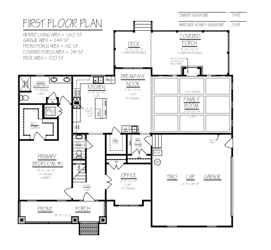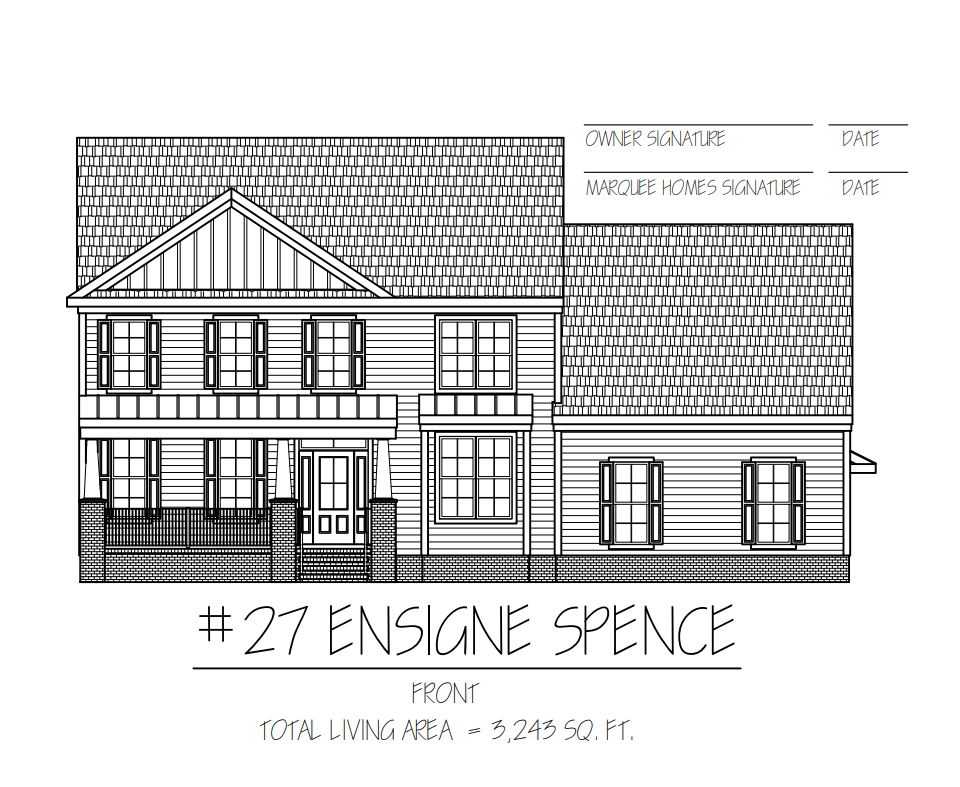 The Coastal Norma Jean Model offers 3,243 sq. ft of well-crafted living space with an open, comfortable layout designed for everyday living and easy entertaining. The main level features a spacious family room with a two‑way gas fireplace shared with the breakfast nook, a large kitchen with a center island, a private office, and a first-floor primary suite with a generous walk‑in closet and upgraded bath. A mudroom, half bath, and multiple covered outdoor spaces—including a wide front porch and composite rear porch—add convenience and charm.